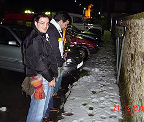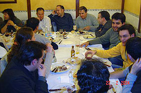 Al día siguiente fuimos a comer con nuestros amigos de Four Winds, un guiñote, unos pacharanes y a ver el Espanyol-Madrid (esto no lo comento, lo siento Chapas) y como fue un poco duro unos no aguantaron y tuvieron que salir a mear a la calle ... con el frío que hacía. |