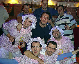 Llegamos al Paleto para reunirnos con la comitiva, la cual no se disfrazó, pero bueno lo perdonaremos por otros años anteriores. No me gustaría olvidarme de los que estuvimos allí: Chapas, Juanki, Raulazas, Juanillo, Bala, Ángela, Ramsés, Raúl, Ceñuka, Chemita, Manel y un servidor, sin olvidarme de Anita que se tuvo que quedar en casa. |